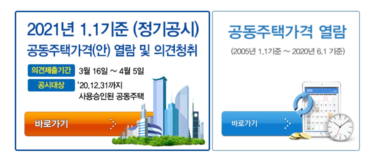 우선 포털사이트에 개별공시지가를 검색하면 네 뜨는 사이트의 홈페이지에 들어갑니다. 우선 '개별공시지가'를 확인하기 전에 내 집의 공동주택 가격을 알아볼게요.