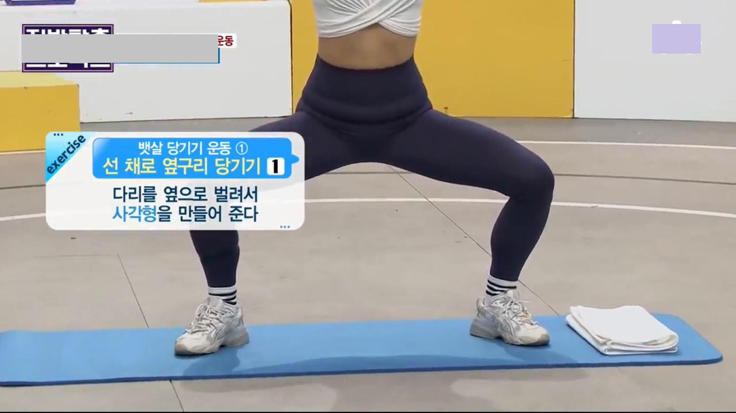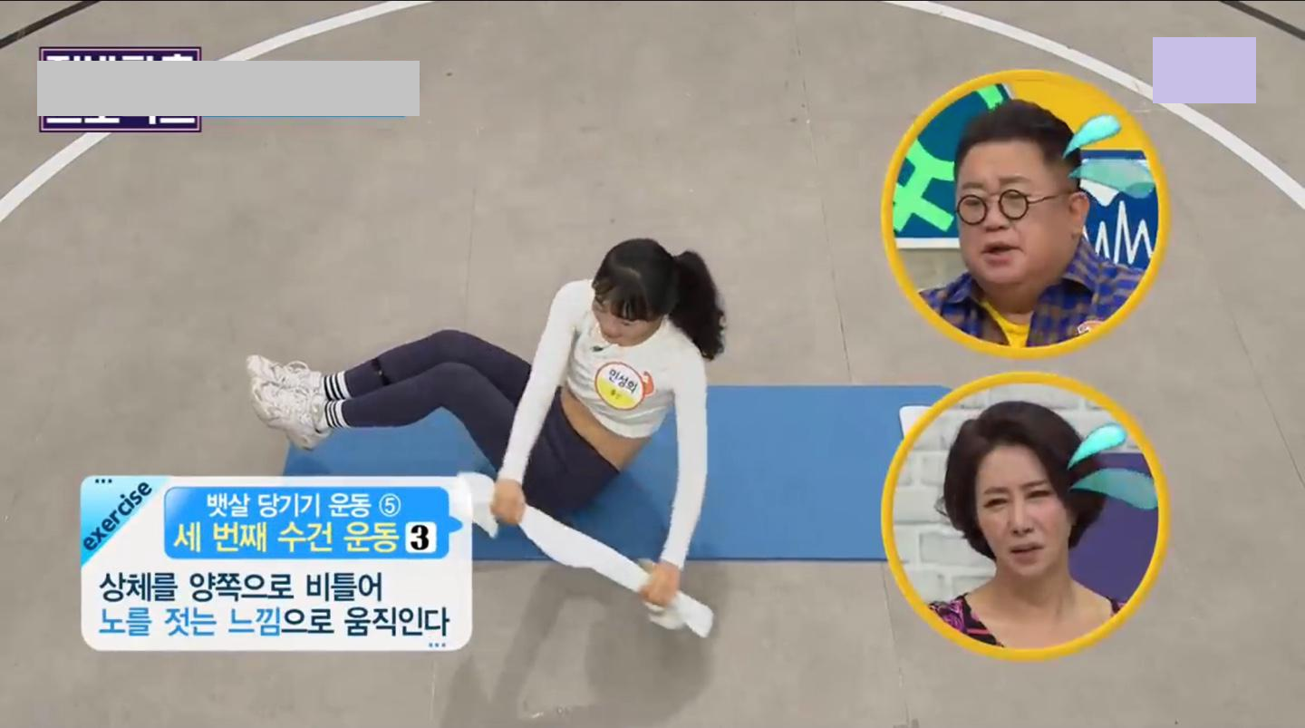 수건 운동은 팔, 다리, 복부, 전신운동이다. 이때 균형을 잘 잡는 것이 중요하다.