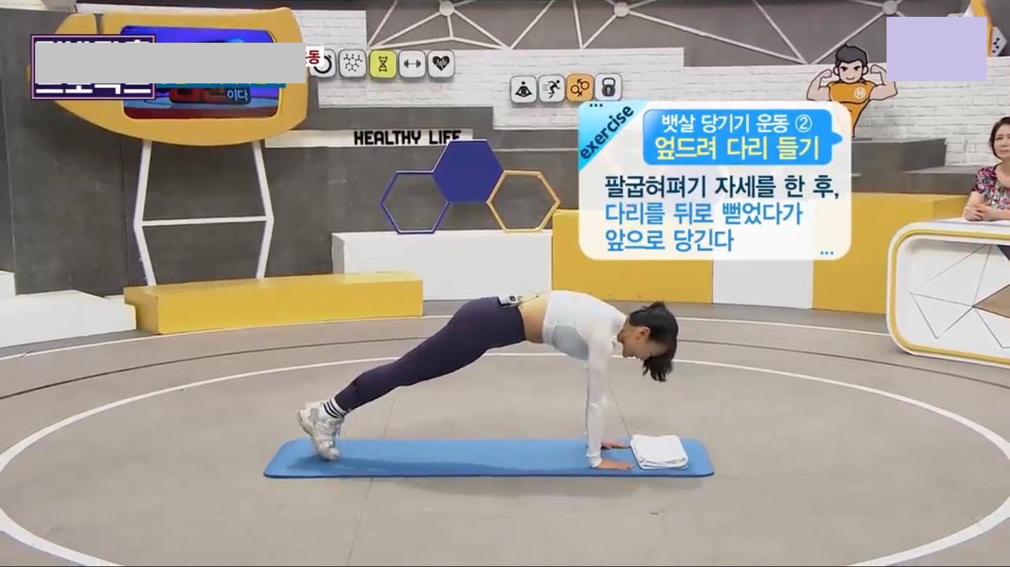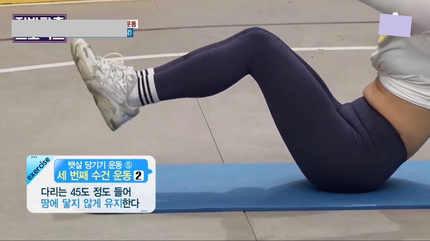 호흡을 후~ 하면서 복근을 더 쥐어짠다는 느낌으로 호흡과 같이 한다.