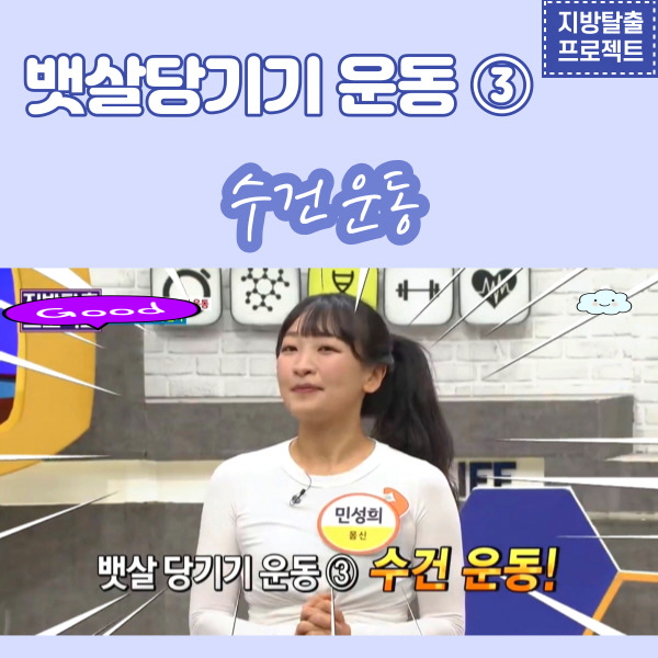 그럼 오늘은 얼마 전에 채널A에서 방영된 '몸신' 민성희 님의 다이어트 운동 '뱃살 당기기 운동'에 대해 알아보겠습니다. 민성희 씨도 100kg이 넘고 다이어트를 이 운동과 병행하여했더니 살 처짐이 없이 단단하고 매끈한 뱃살을 유지해서 화제가 되었습니다.
