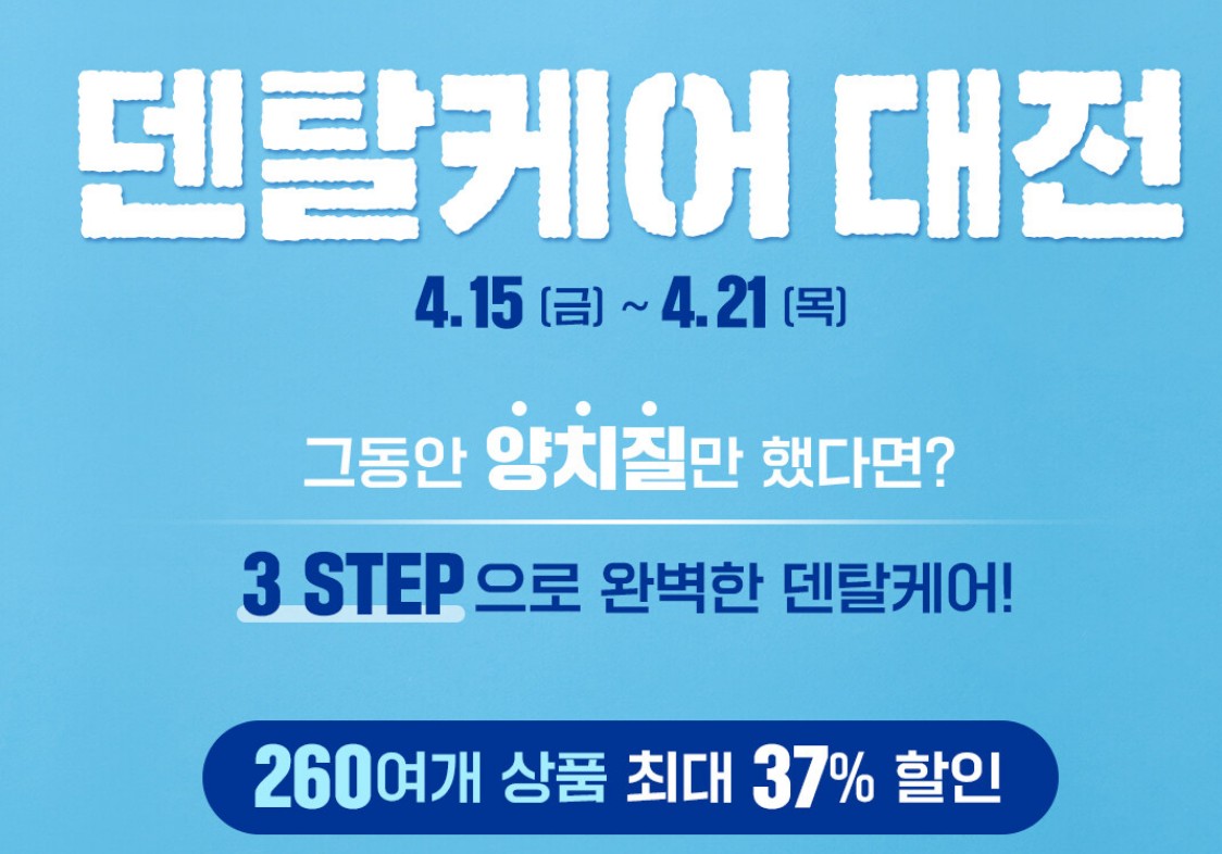 올리브 영에서 덴탈제품 260여 개를 최대 37% 할인해 주고 있습니다. 최근에는 단순하게 이를 닦는 것에서 끝나지 않고 몇 단계를 거쳐서 구강관리를 합니다.