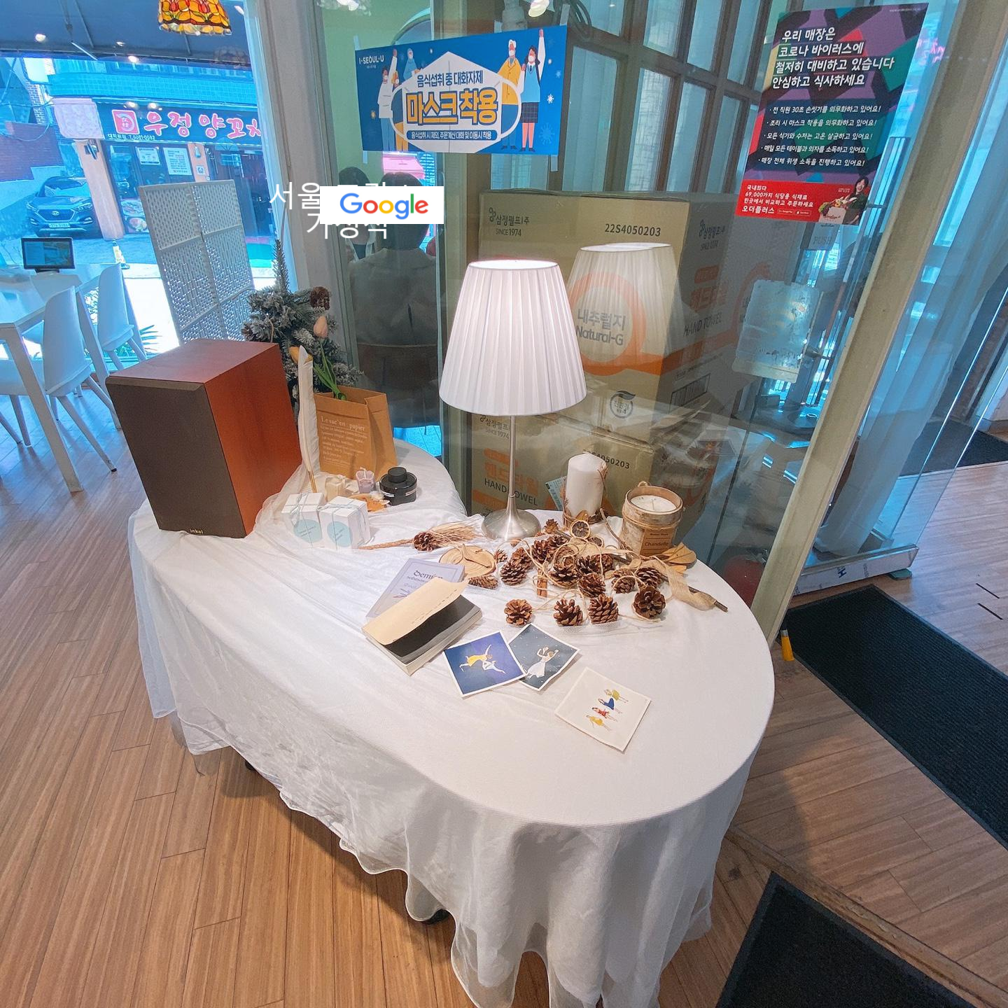 입구에는 뭔지 모르지만 예쁘게 테이블 데코가 되어있습니다.