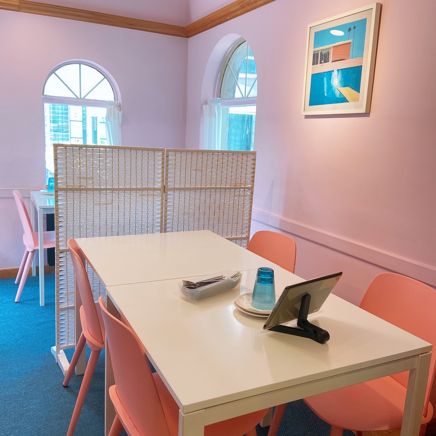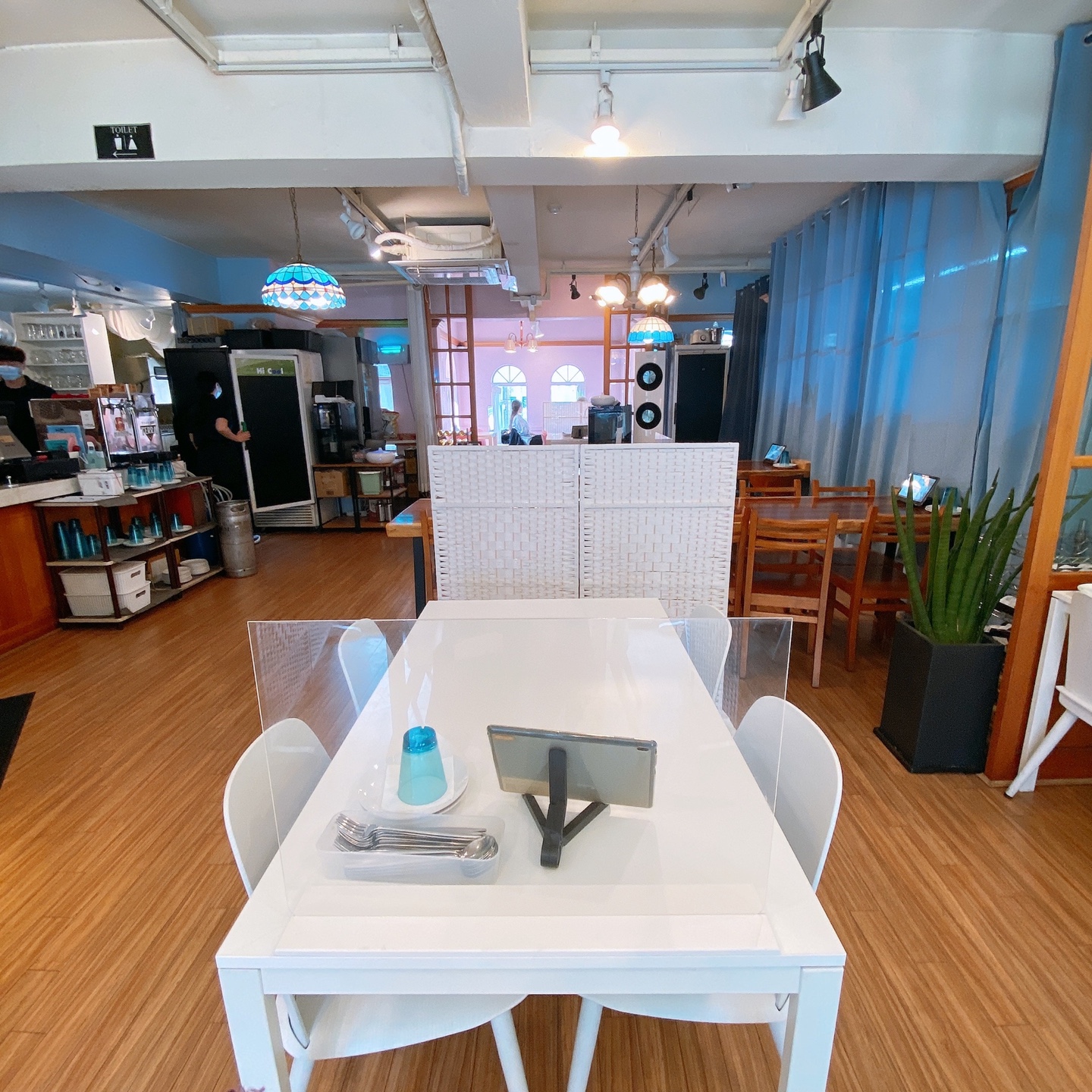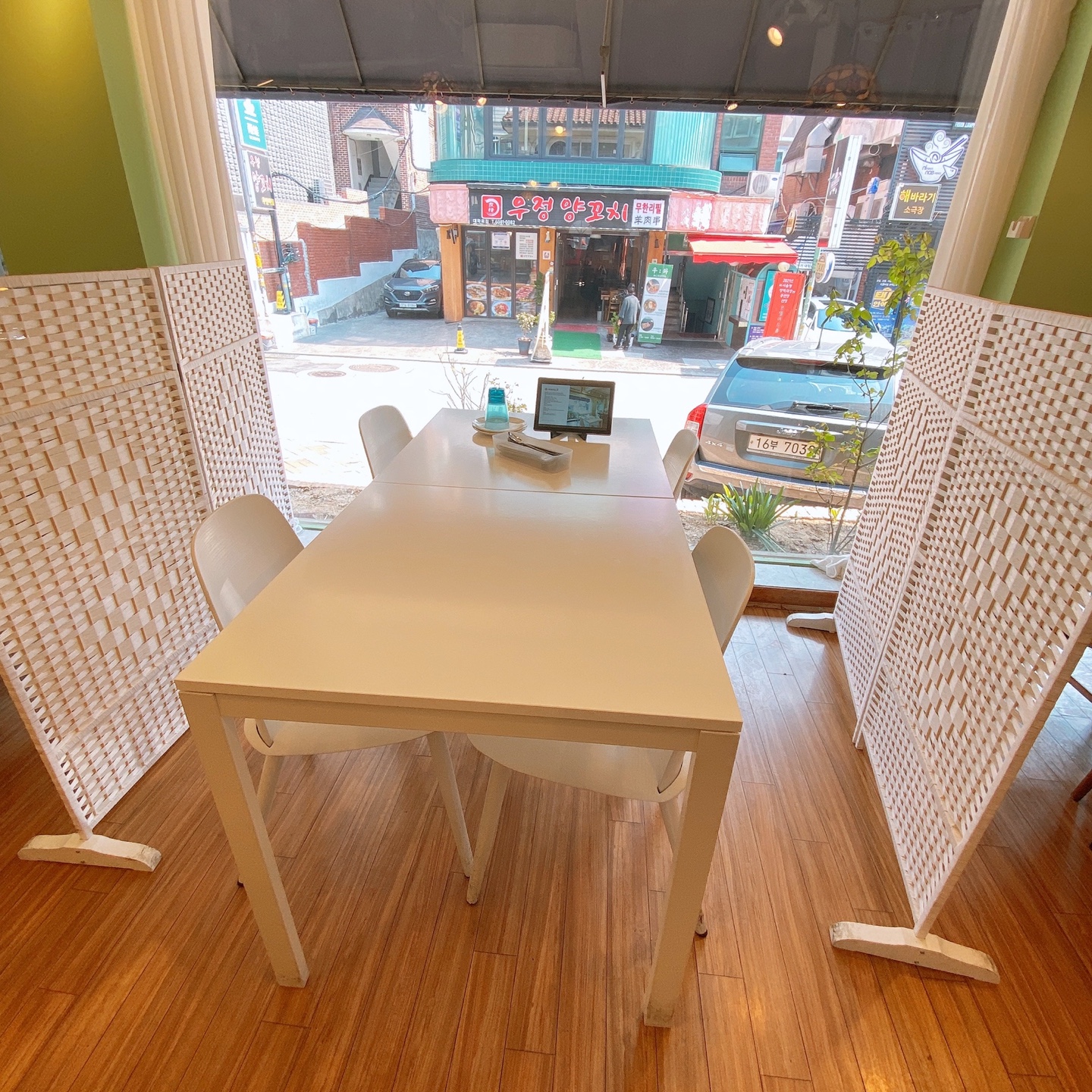 요기 창가 가운데 테이블이 저희가 앉은자리예요. 프라이버시를 위해 가림막으로 되어있습니다.