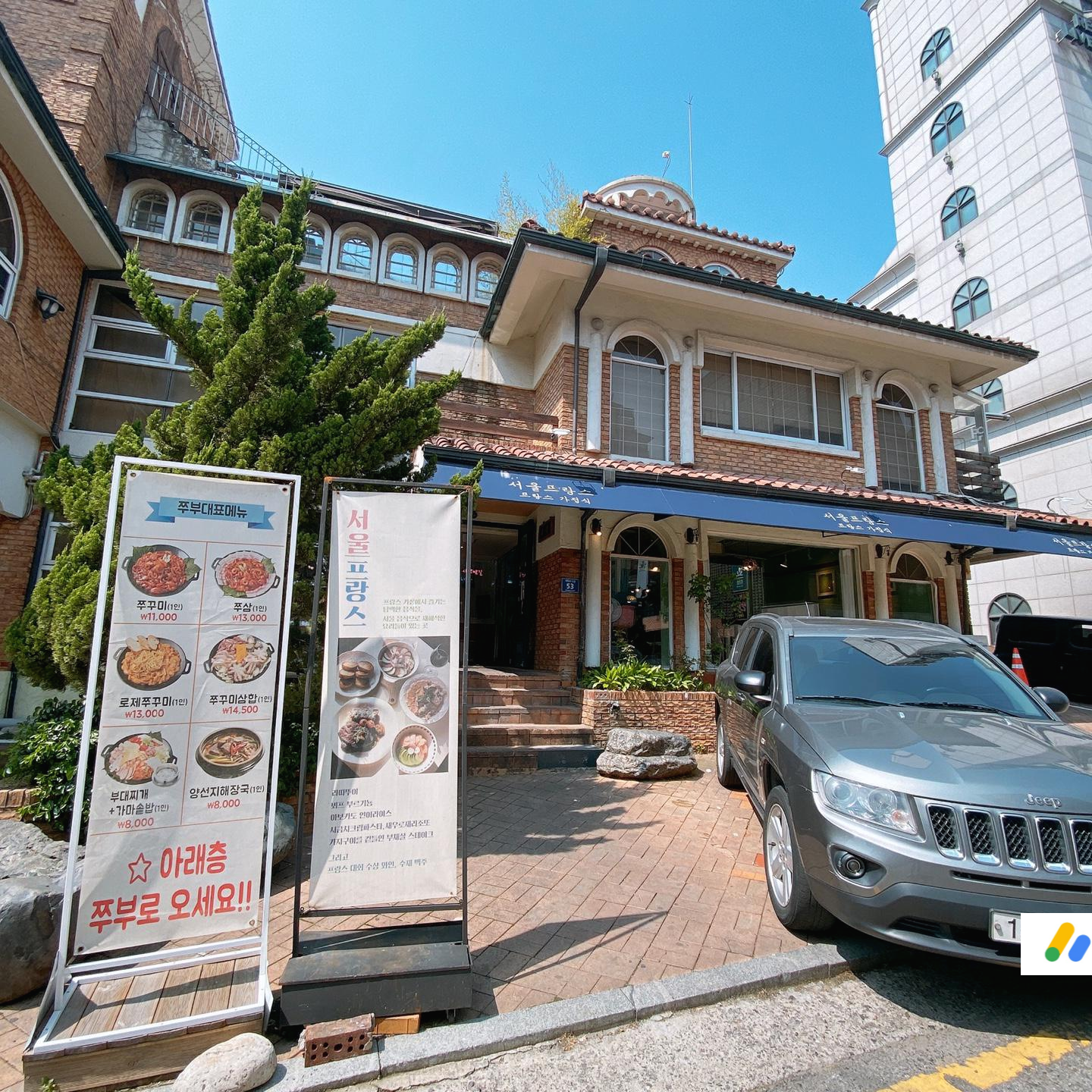 서울 프랑스는 프랑스 가정에서 가볍게 즐기는 음식을 서울식으로 재해석한 요리들이 있는 편안한 공간입니다라는 설명이 있더라고요.