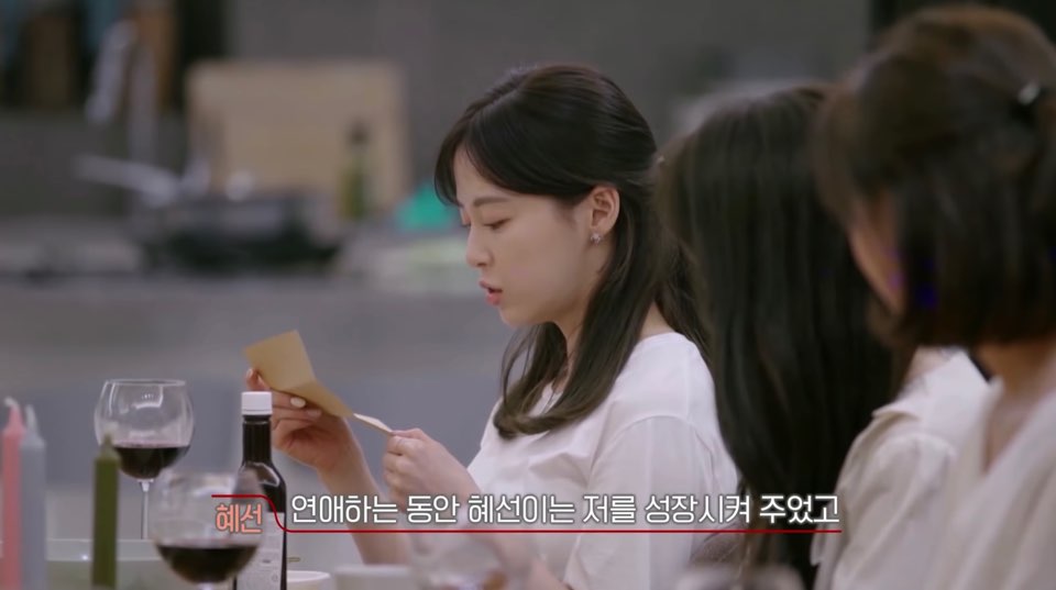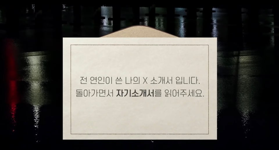 식사후 각자에게 편지가 주어집니다. 그러면 그 안에 그자리에 있는 '나의 과거 연인'이 나에 대해 설명해주는 '자기소개서'를 읽어주는 거지요.
