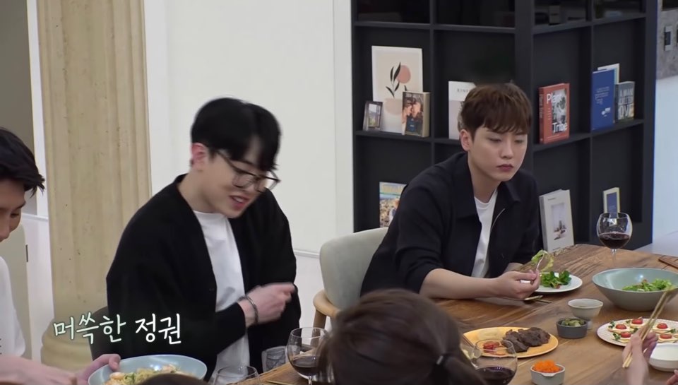 많은 사람들 특히 여성분들의 요리 칭찬에 정권은 쑥스러움을 표시합니다.