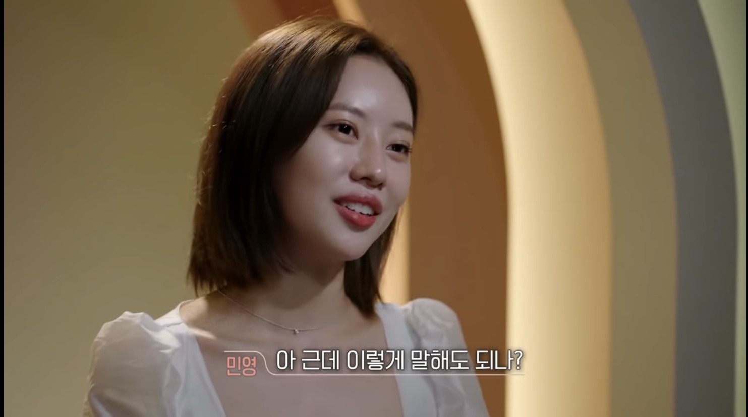 데이트를 마치고 방에서 쉬다가 누가 오는 소리에 나와본 여성출연진 민영은 표정이 매우 안좋았습니다.
