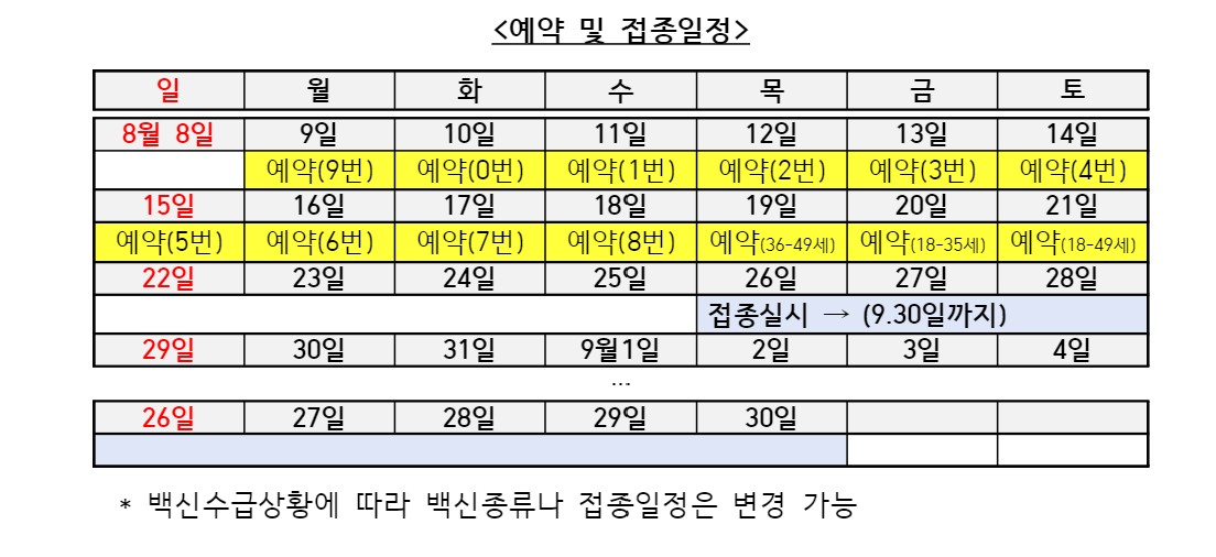 - 접종 8월 17일(화) ~ 9월 11일(토)