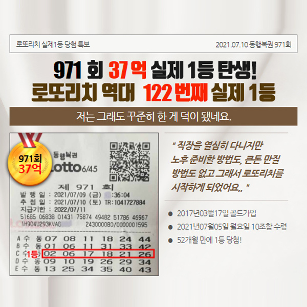 “한가닥 희망을 걸고 로또리치 시작했어요!”