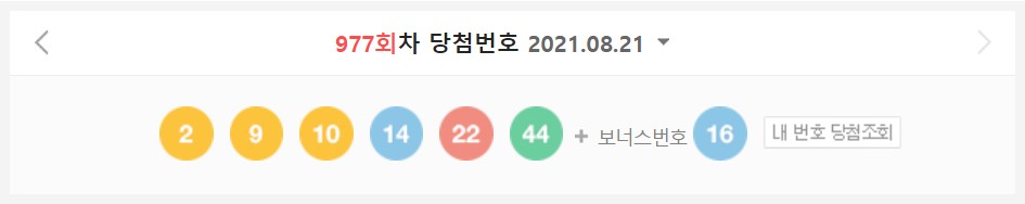 ◆ 8월 21일 977회 lotto 로또 1등 당첨금 ◆