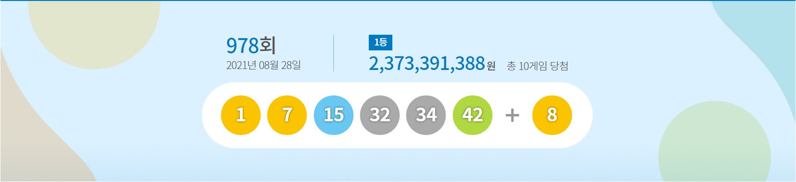 ◆ 8월 28일 978회 lotto 로또 1등 당첨금 ◆