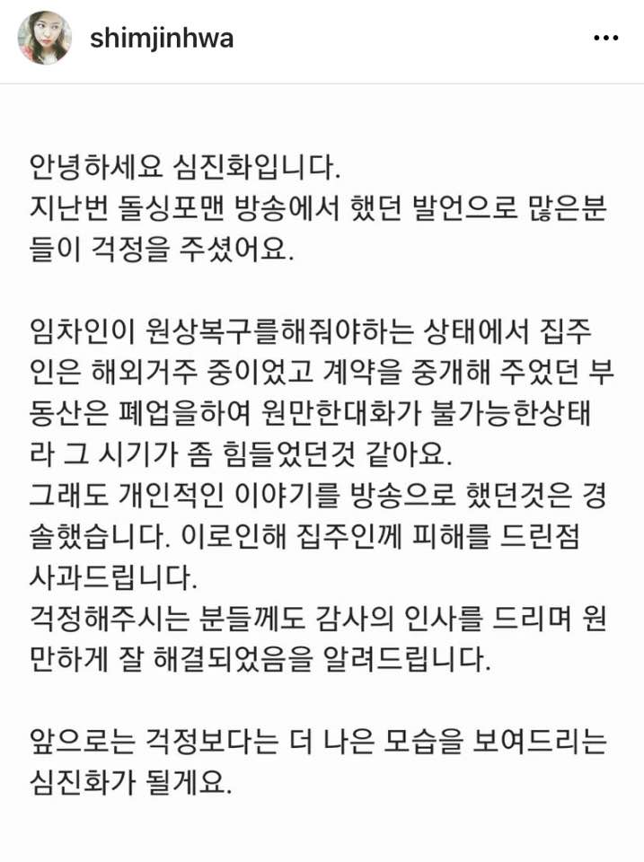 또한 많은 분들이 심진화씨를 걱정하는 마음도 있고 어떻게 해결이 되었는지 궁금하시는 분들도 많았습니다.