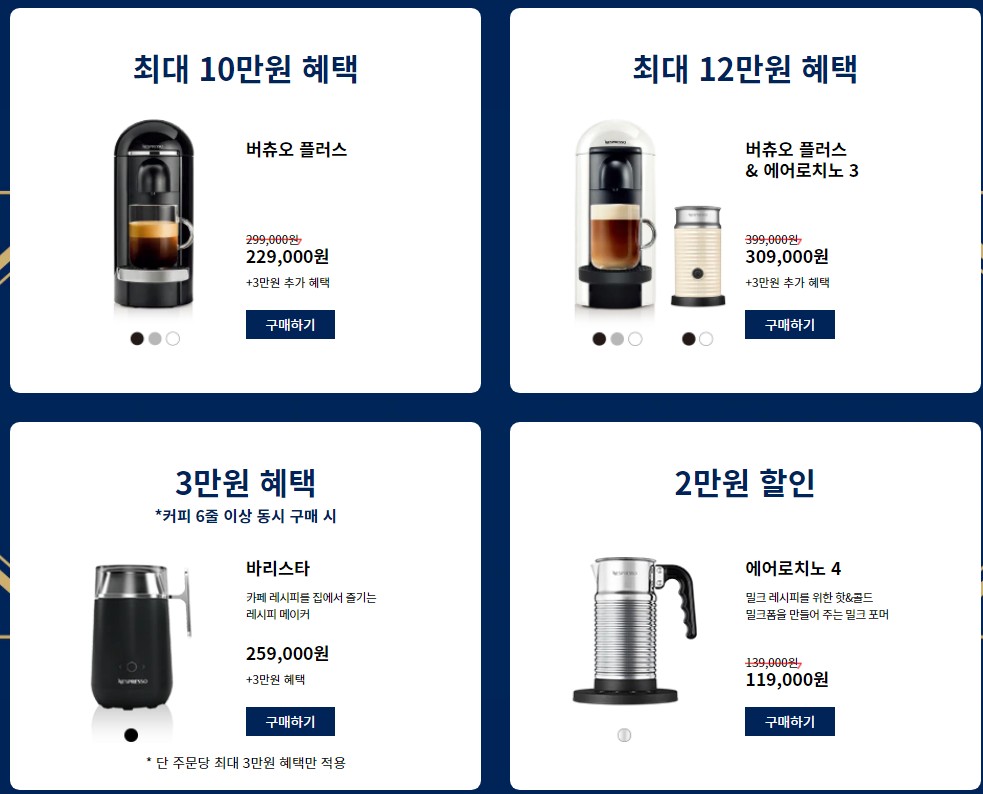 1. 네스프레소 홈페이지 (연말 프로모션 할인 혜택 적용 중)