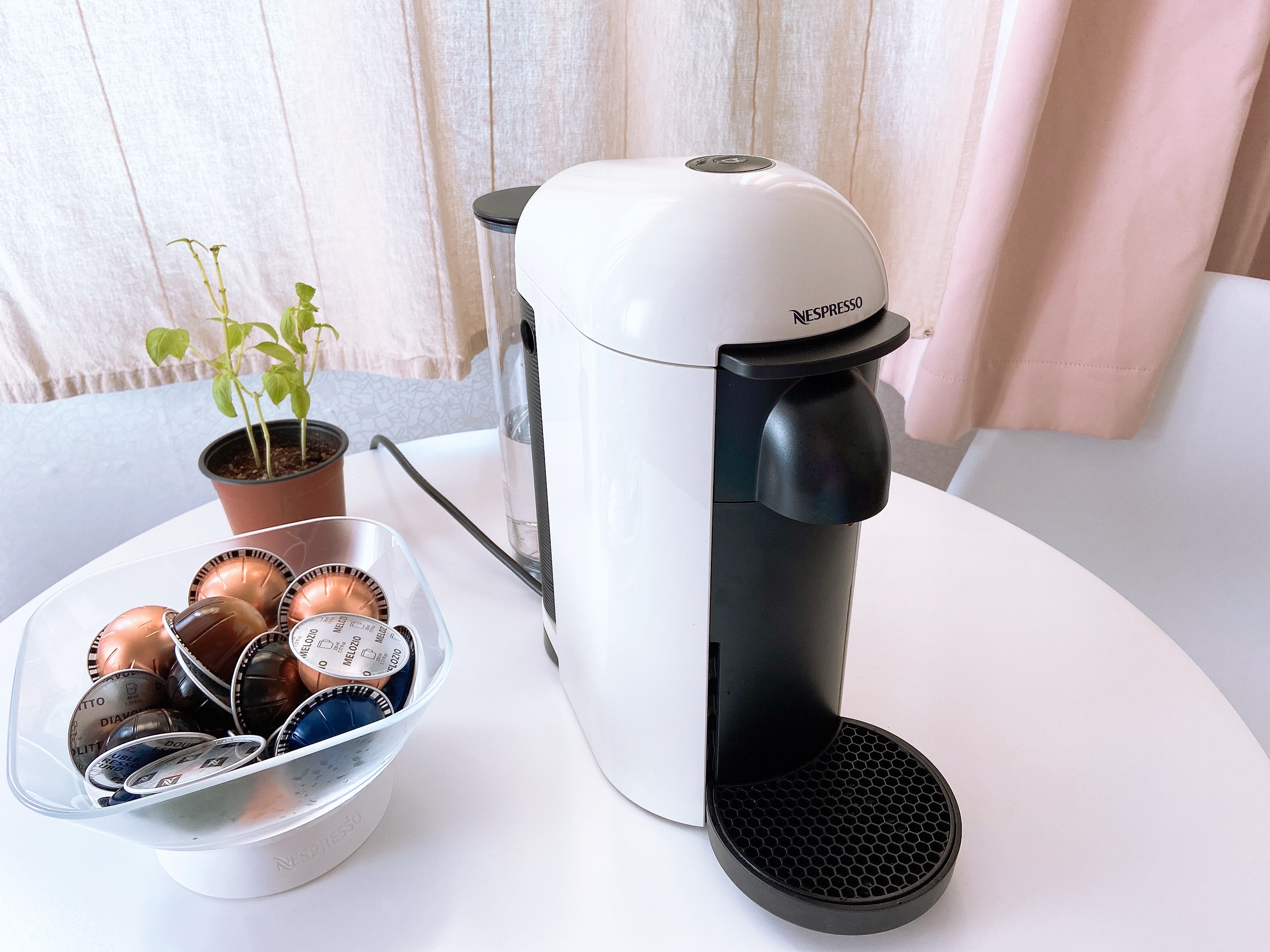 저는 네스프레소 버츄오 커피머신을 화이트로 구매했습니다. 화이트는 나중에 출시된 모델이어서 블랙과 실버보다 더 아담하게 나왔어요~