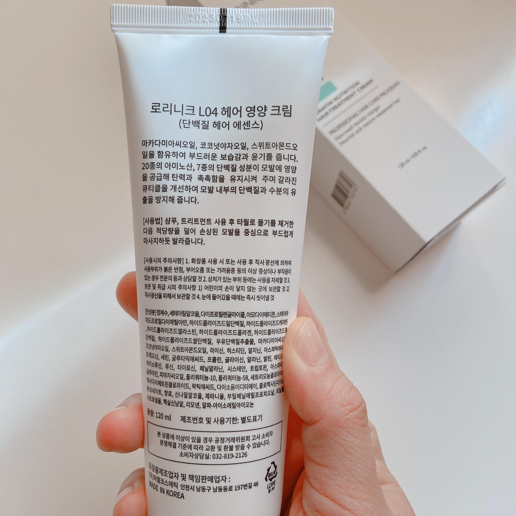 로리니크 L04 단백질 헤어크림 120ml 전문가용 단백질 헤어에센스 노워시 트리트먼트 단백질 헤어