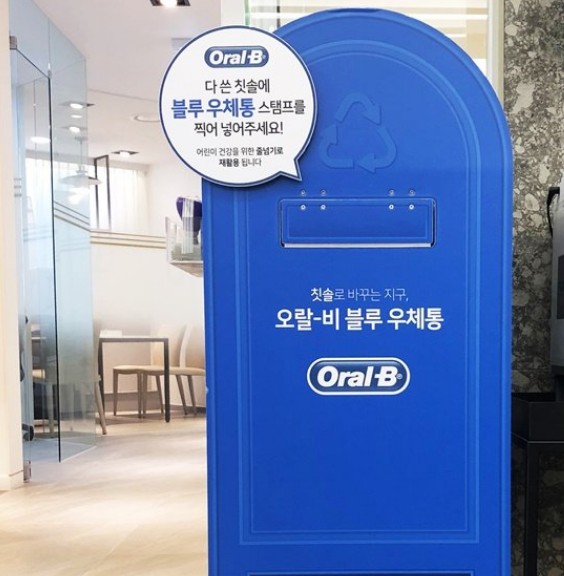 다행히 이러한 환경문제의 심각성을 아시고 다 쓴 칫솔 분리수거에 앞장 서서 활동하시는 분들이 계셨는데요. 여러분이 많이 알고 계신 브랜드 '오랄비'와 '테라사이클' 이라는 기업이 함께 하고 있는 '블루 우체통 캠페인'입니다.