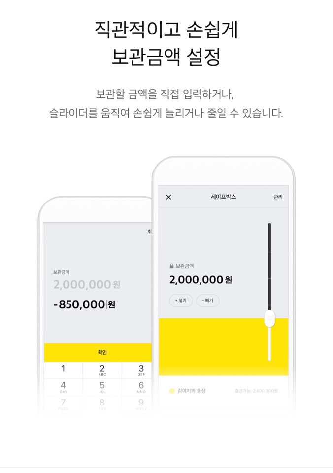 그래서 카카오에서 생각한 것은 바로 '금고' 입니다. 금고 개념으로 통장을 만들면 어떨까?