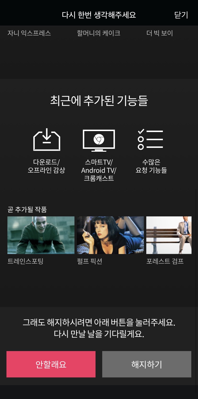 우선 해지하기 전에 왓챠 무료체험 먼저 하고 오실게요~ ㅋ무료체험 2주 가기 전에 뵙겠습니다.