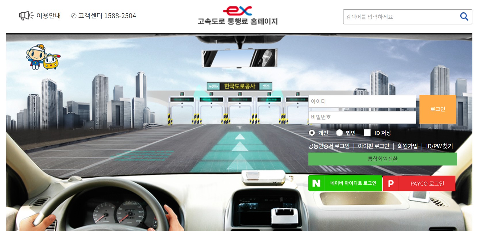 첫 번째 :  한국 도로공사 홈페이지에 들어간다.