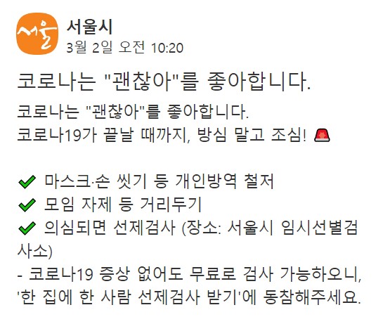 서울시민은 증상이 없어도 무료검사가 가능하다고 합니다~ 하지만 재차 확인은 필수!!입니다.