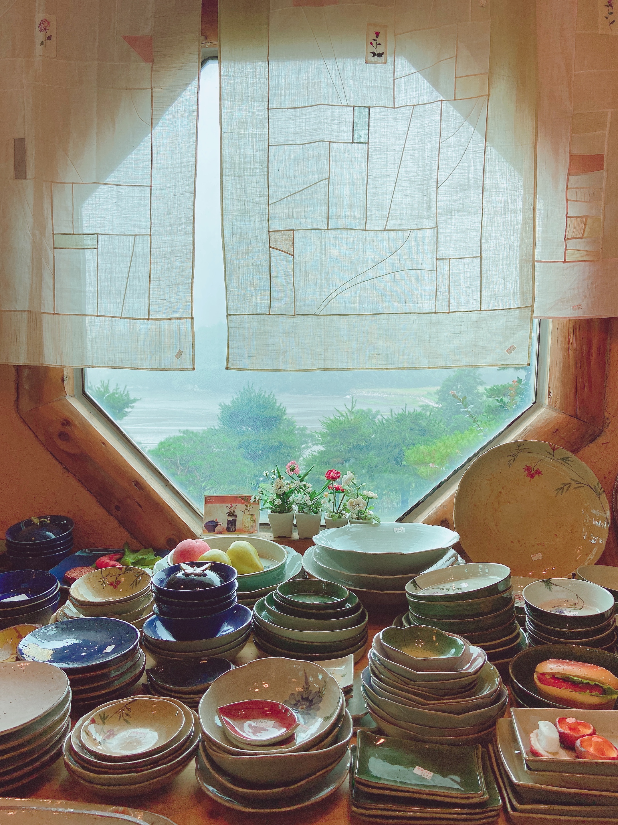 1층 입구부터 한쪽에는 그릇구경을 하도록 진열해 놓았구요.