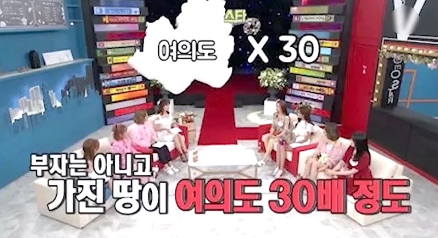 또한 시아버지가 소유한 땅의 면적이 여의도의 30배라고 하네요.