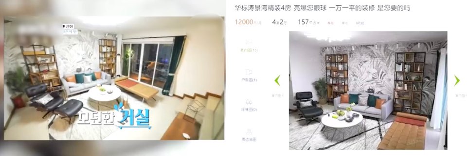 하지만 방송에 나온 모습과 똑같은 인테리어의 사진이 중국의 부동산 거래 사이트에 매물로 나왔다는 설