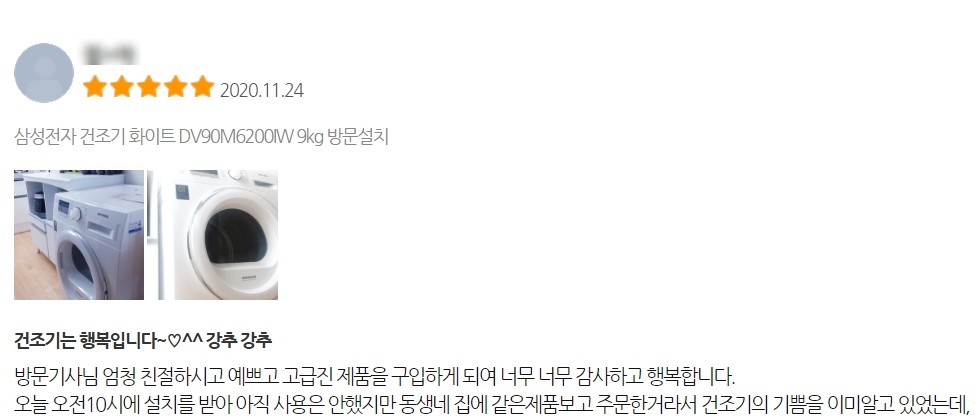 삼성 건조기 화이트 DV90M6200IW 9kg 리뷰_삶의 질을 바꿔주는 가전 ⓐ