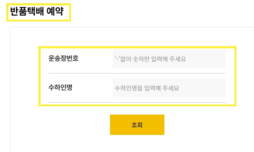반품 택배를 예약하려면 운송장 번호와 수하 인명을 입력해야 합니다.