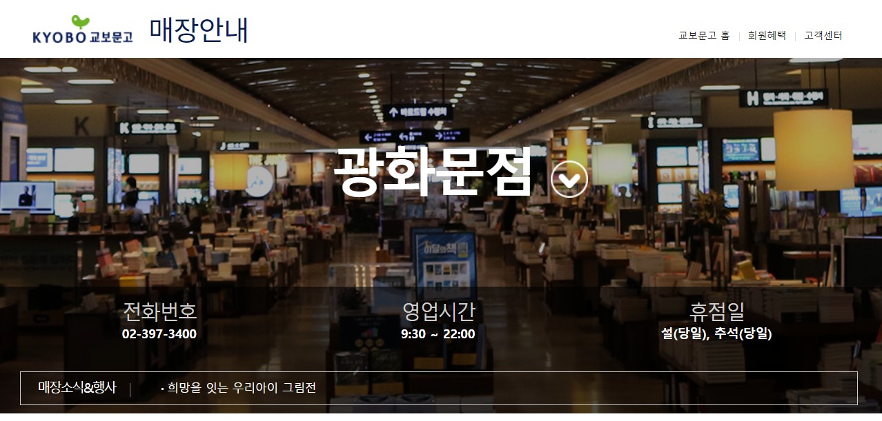 교보문고 광화문점을 선택하면 매장에 대한 자세한 정보와 지도가 나옵니다.