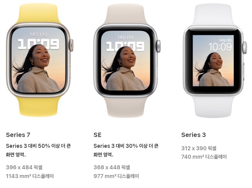 - SE : 시리즈 3에 비해 대비 30% 이상 큰 화면 영역, 396X448 픽셀, 977㎟