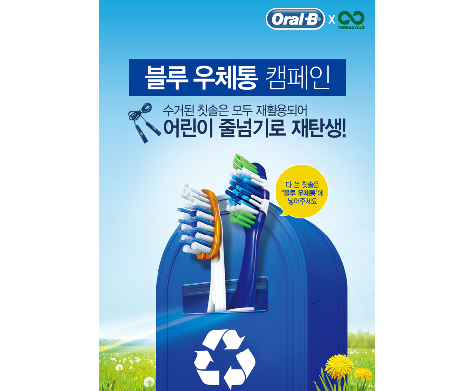 다행히 이러한 환경문제의 심각성을 아시고 다 쓴 칫솔 분리수거에 앞장 서서 활동하시는 분들이 계셨는데요. 여러분이 많이 알고 계신 브랜드 '오랄비'와 '테라사이클' 이라는 기업이 함께 하고 있는 '블루 우체통 캠페인'입니다.