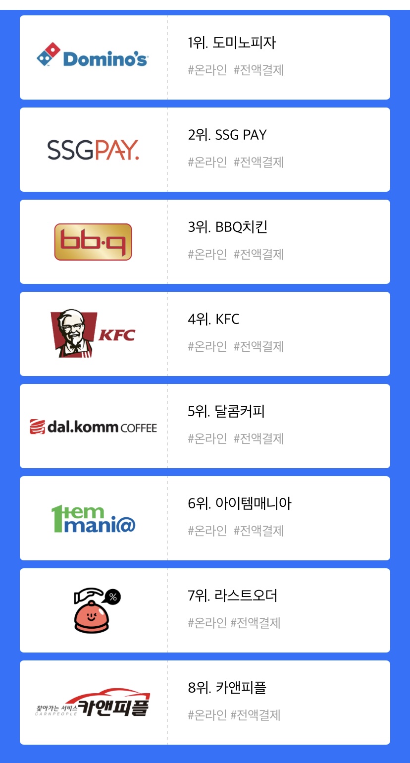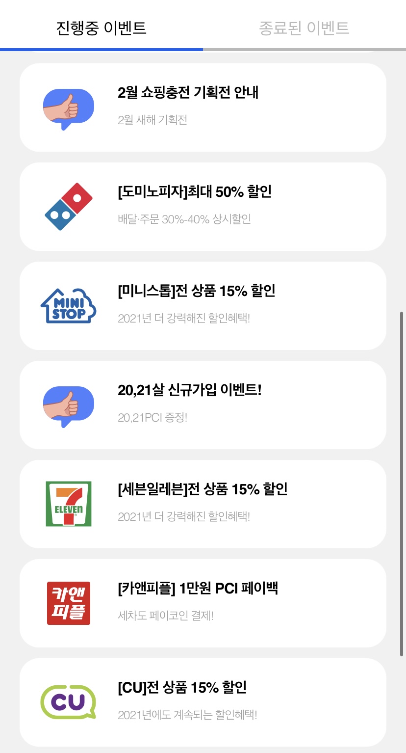 - 각종 편의점, 온라인 쇼핑, 도미노 피자 등~(할인 이벤트 대박 많음)